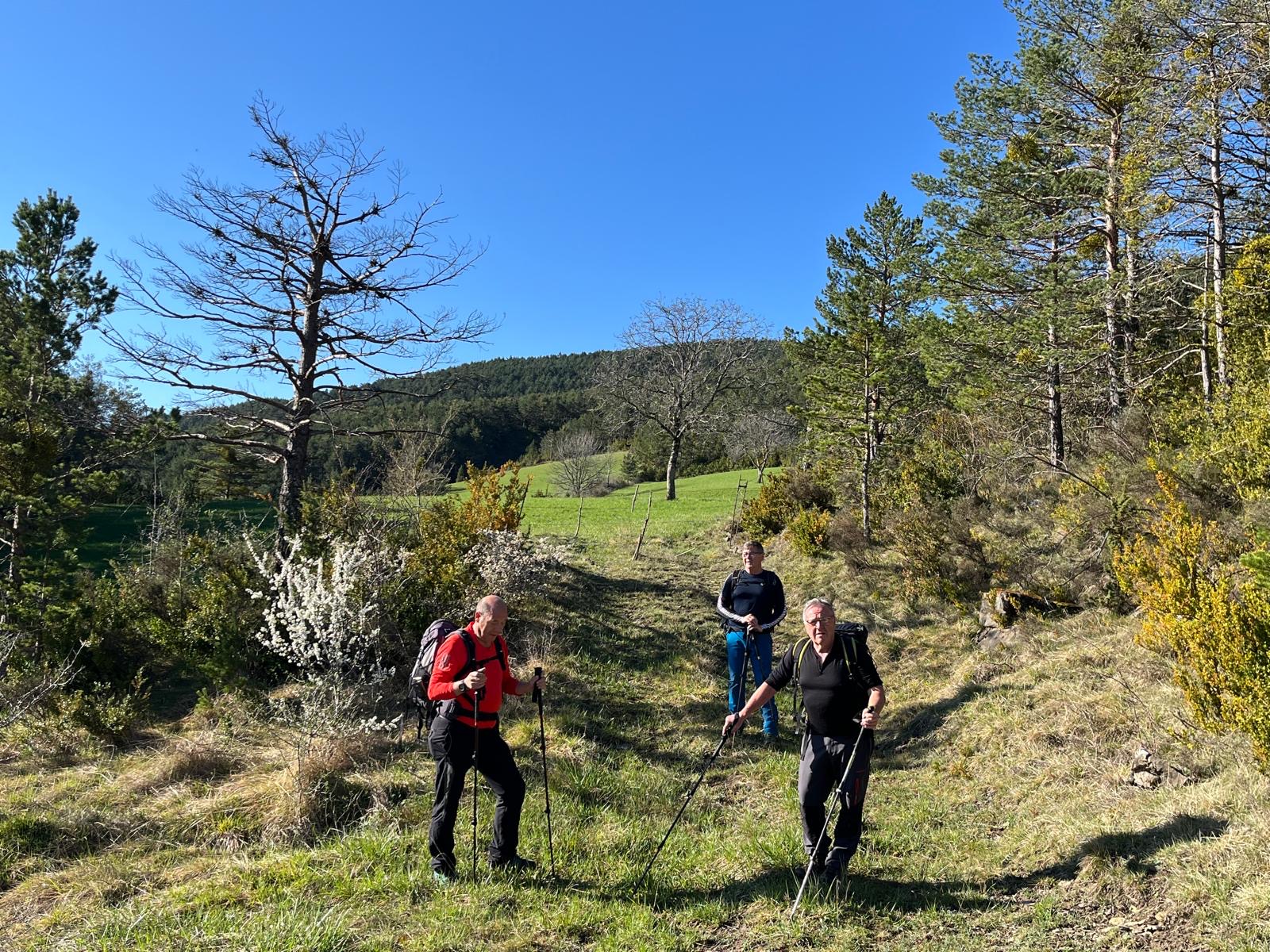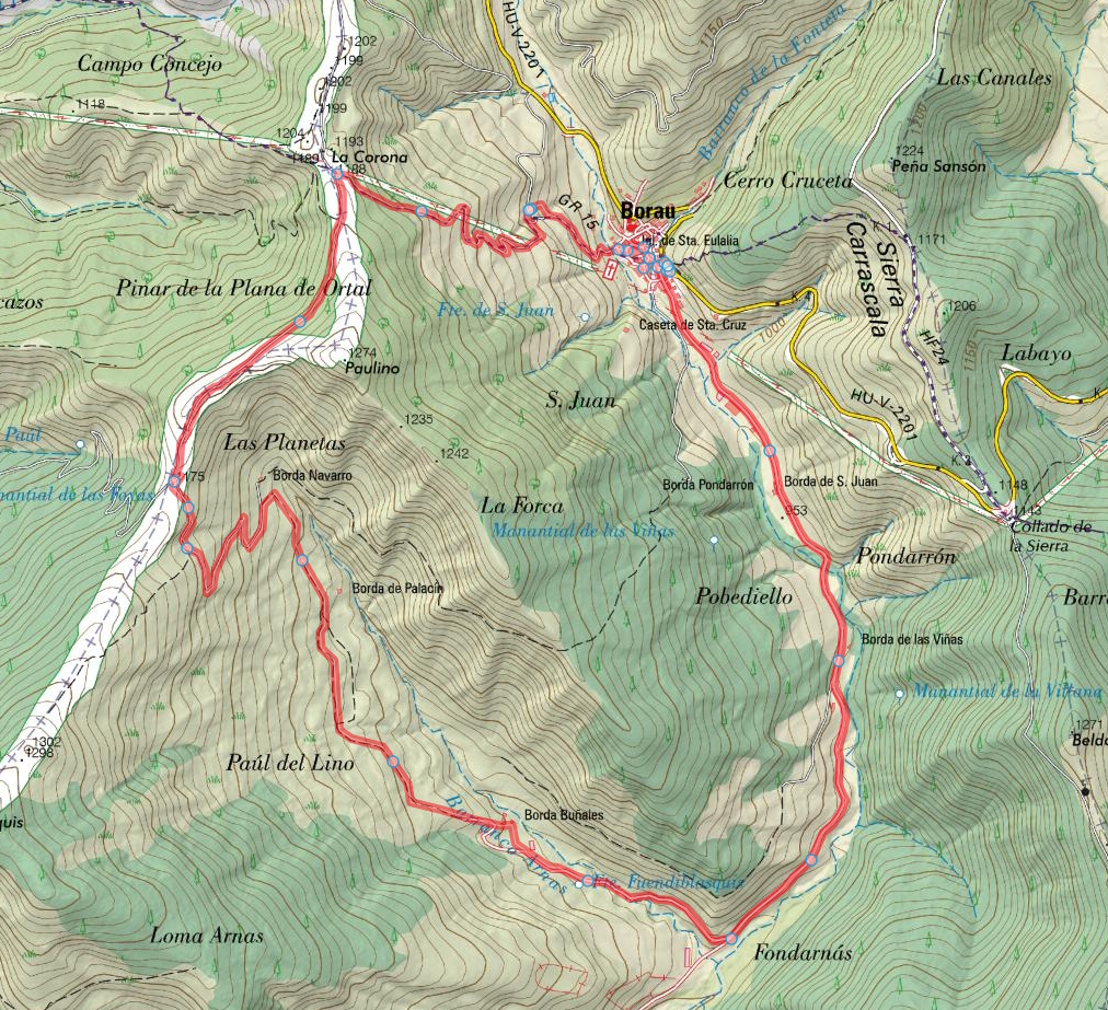 Finalizado el receso bajaremos por una empinada senda hasta llegar de nuevo a la pista, pasaremos junto a un desvío que nos llevaría al Monte Blasquis, que dejaremos para otra ocasión, seguiremos andando por la pista ya en el Valle de Arnás, pasaremos junto a unas modernas construcciones dedicadas al turismo rural. El camino nos llevará hasta el cauce del rio Lubierre, caminaremos por su margen derecha un buen rato, cruzaremos a su margen izquierda por un puente y aquí la pista se convierte en carretera asfaltada que nos devolverá a nuestro punto de inicio en Borau, donde nos esperará el autobús para llevarnos al Restaurante El Mesón, en Castiello de Jaca para comer.