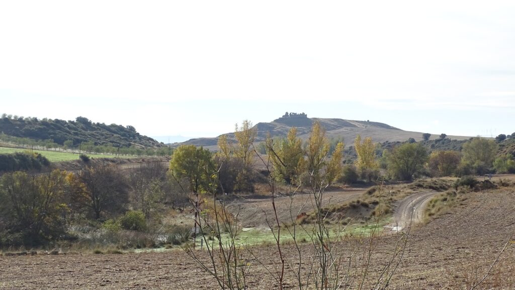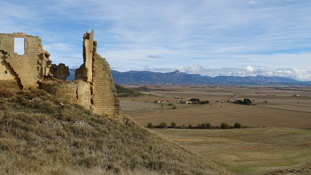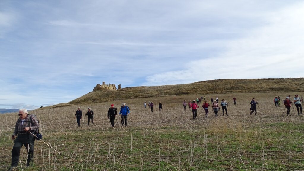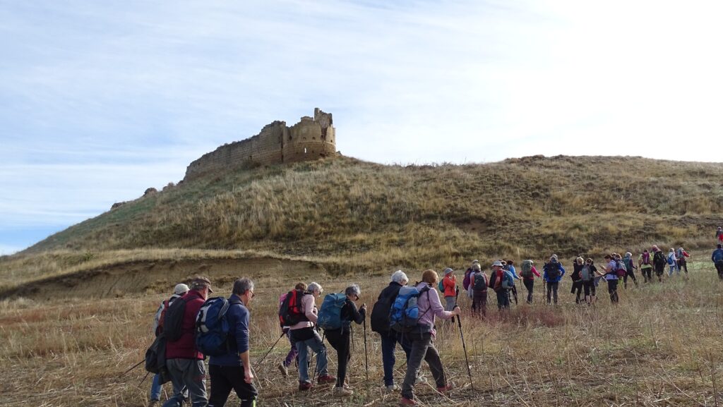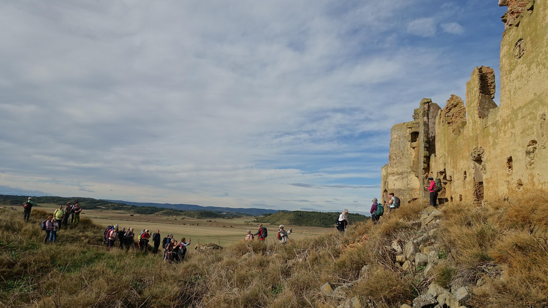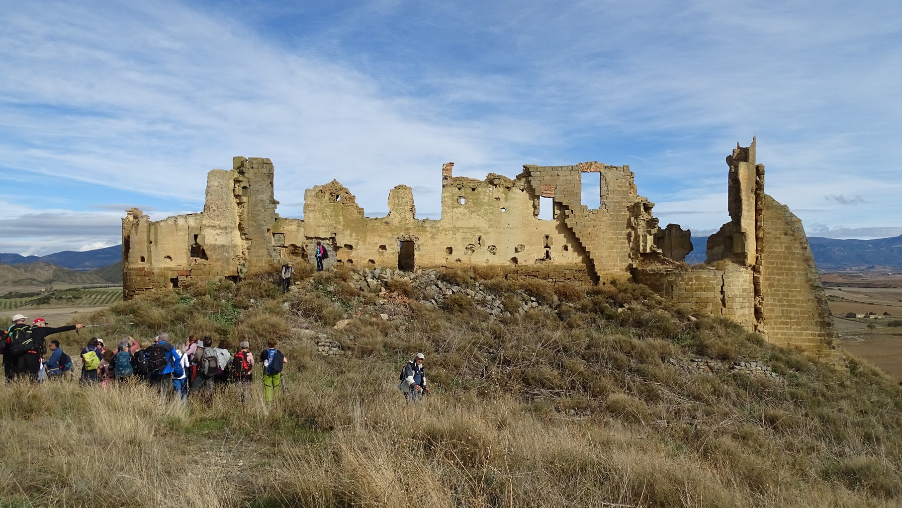 Pasada la estación de Turuñana nos paramos a almorzar y dado que se había quedado un día muy luminoso decidimos alargar el paseo y llegar al  castillo de Artasona. Se encuentra en estado ruinoso, pero presenta una característica muy singular: la planta del castillo es triangular.