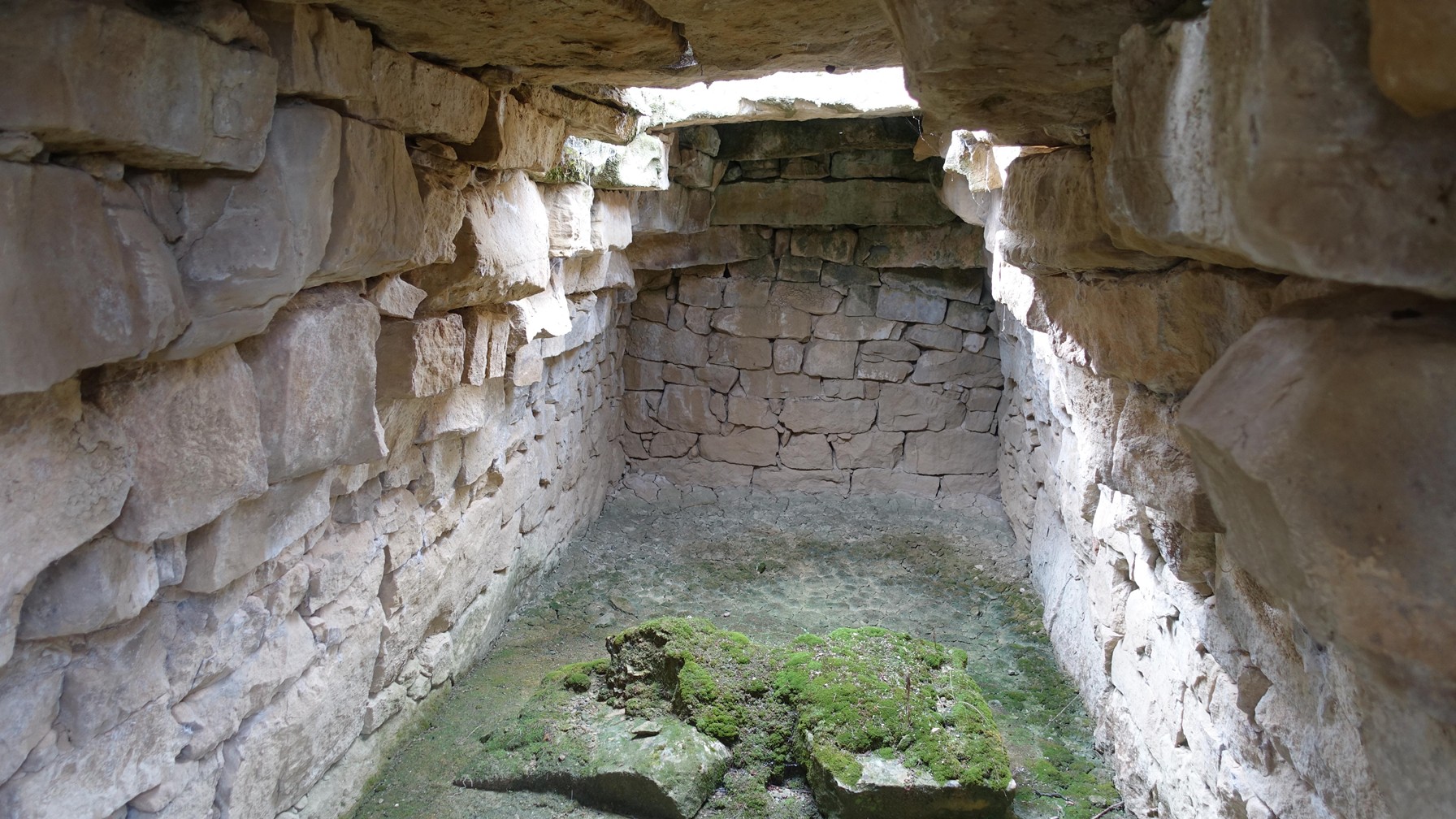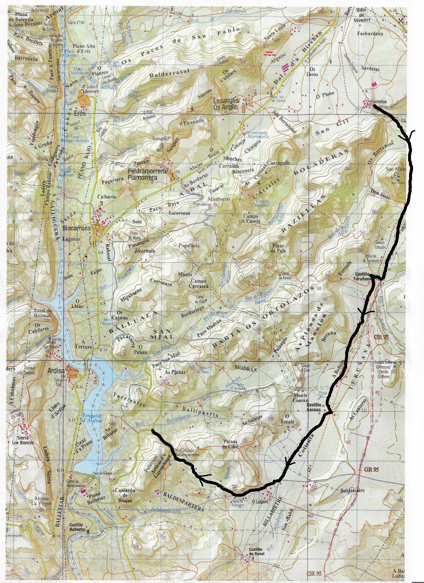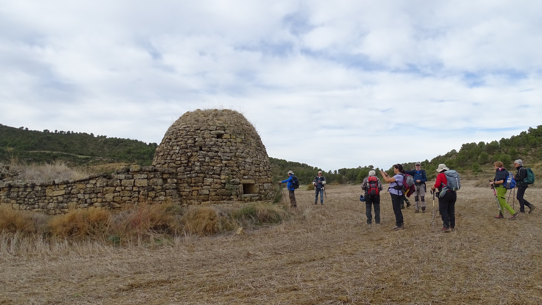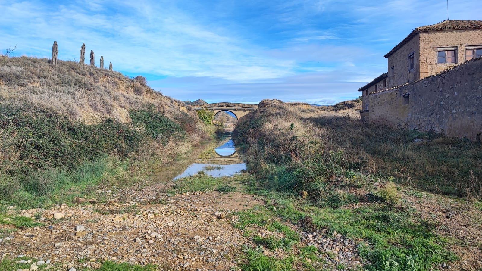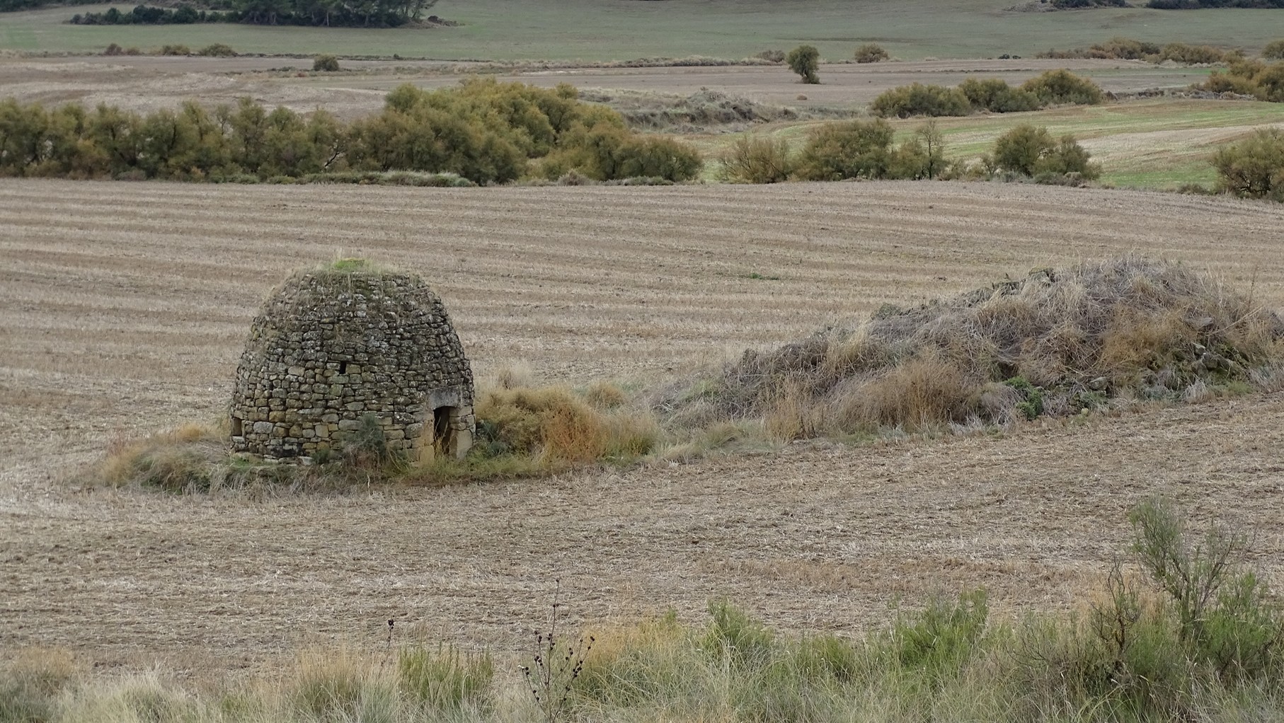 Volvimos al camino que cruza el valle perdido del rio Astón hasta llegar a la antigua estación de Piedramorrera-Biscarrués siguiendo los amplios viñedos de las Bodegas Edra. Ya en la amplia pista que conduce a O Lugaré, y debidamente indicados, nos desviamos a visitar  un curiosos aljibe de pluviales.