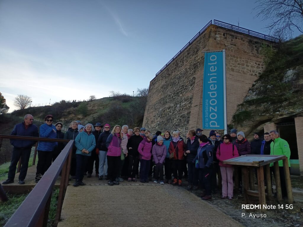 Así pues entre Rosa y nuestro especial compañero Pedro Ayuso nos mostraron y explicaron todas las curiosidades el pozo, al que se puede acceder en grupo y que está muy bien conservado, fue construido por Pedro de Ruesta sobre 1.612 y tiene unas dimensiones colosales, con planta rectangular, está excavado parcialmente en la roca y cerrado con paredes de piedra, ladrillo y cal, rematando el techo una bóveda de cañón en ladrillo, donde se encuentra el hueco para su llenado.