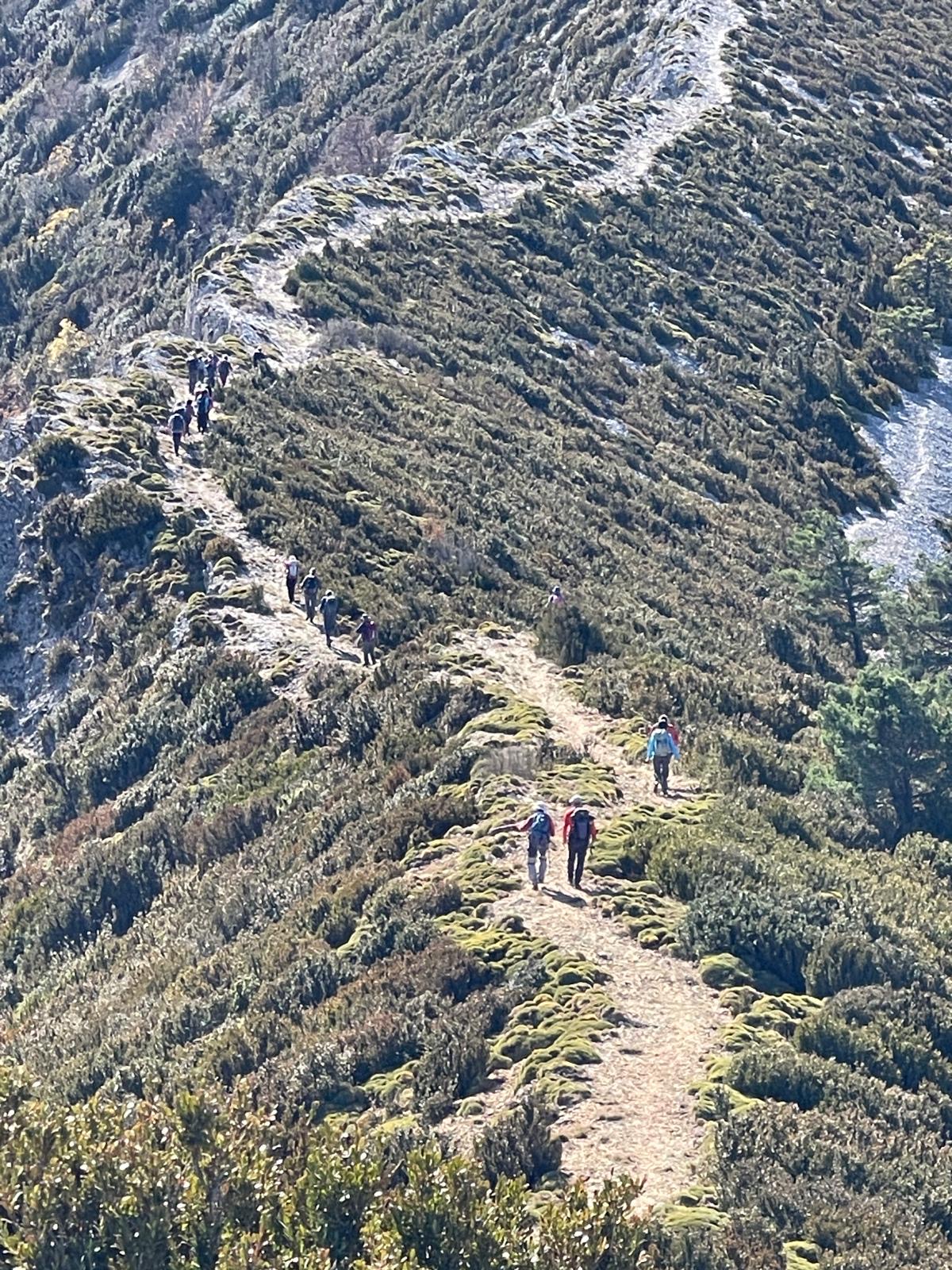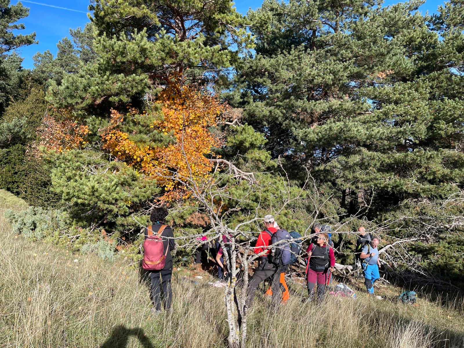 El pasado domingo día 9, la sección de Turismo por el Alto Aragón de Peña Guara iniciábamos nuestra ruta en la Pardina de Orlato, con una temperatura que rozaba los cero grados caminamos, aproximadamente durante una media hora, en suave subida entre vegetación de monte bajo, hasta que empezó la subida real al pico Gabardiella, muy exigente y en las que se altenaban zonas de umbría y de sol. Al poco ya comenzó a calentar el sol y la temperatura cambió radicalmente, esto unido a la ausencia total de viento y lo empinado del camino, hizo que muchos compañeros se pusieran de manga corta.