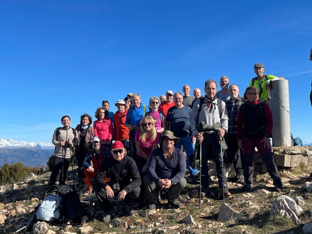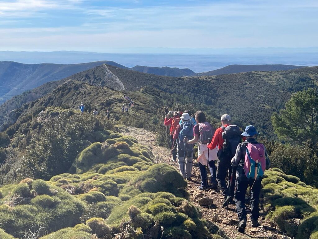 Pasada la Punta Norte (1504 m.) paramos en un pequeño prado para almorzar, a continuación, con las fuerzas repuestas, retomamos la subida hacia nuestro destino el Pico La Gabardiella (1696 m.), al que llegamos alrededor de las 12 del mediodía, impresionante panorámica, las camaras de los móviles echaban humo, seguidamente recorrimos toda la cresta en comoda caminata, disfrutando del paisaje, pasamos por la Punta Sur hasta llegar al desvío al Pico La Luna. A partir de aquí un largo descenso por la cara norte que va alternando zonas de piedra suelta y zonas de umbría, nos lleva hasta el barranco del Cambón, recorremos la senda que va paralela al barranco hasta llegar al puente de Lúsera donde aprovechamos para comer, que ya es hora. Finalizado el ágape subimos a la carretera para dirigirnos al bus que nos espera en el desvío a Lúsera y que nos llevará a casa.