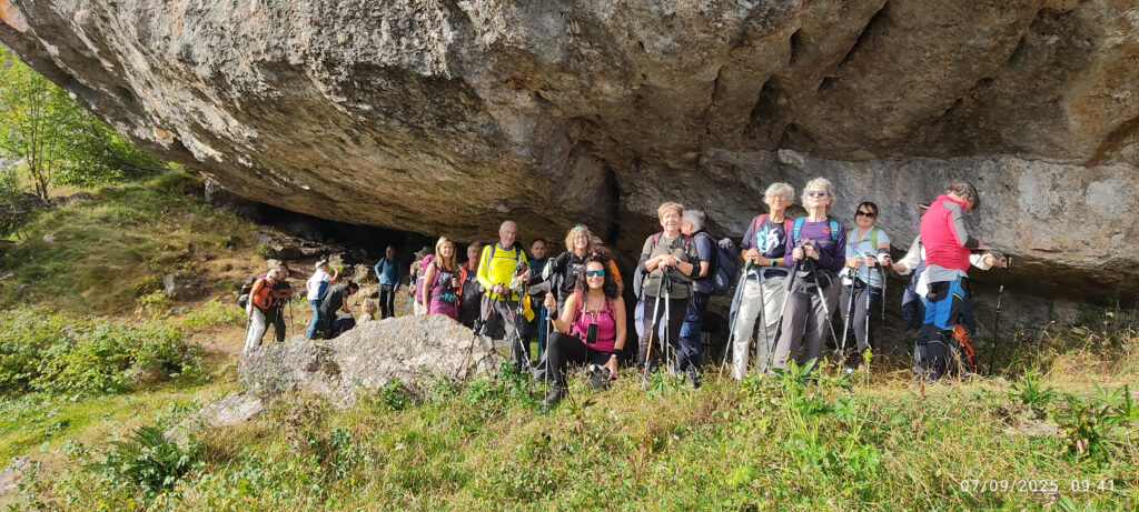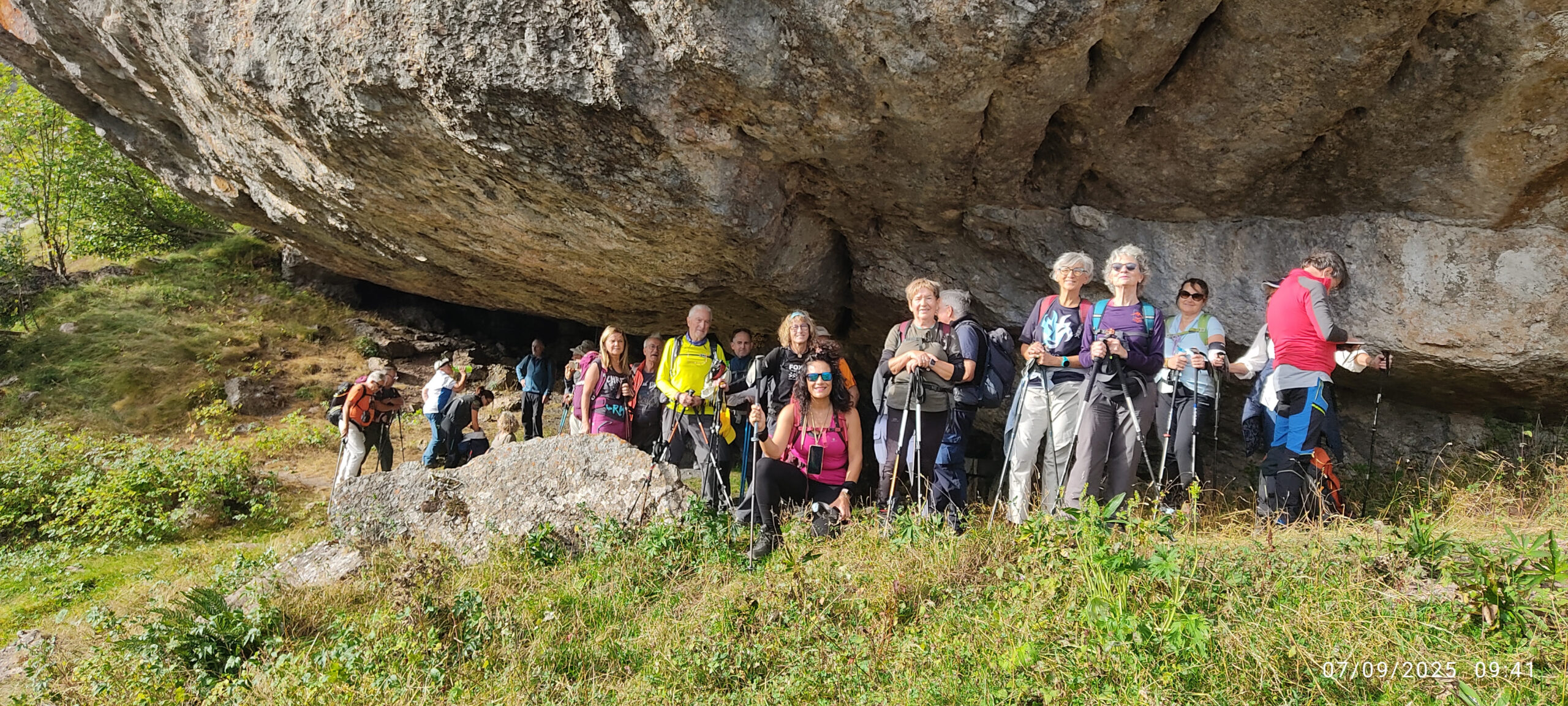 Sobre las 8,45  iniciamos la  marcha desde en parking de la estación de Candanchú en dirección al collado de Causiat por el trazado de la GR-11, poco antes de llegar al mismo nos desviamos dirección Sur y teniendo en frente una bonita vista de la Zapatilla  ascender hasta un abrigo bajo las rocas conocido como la cueva de los contrabandistas con buenas vistas de la zona de Candanchu desde lo alto.