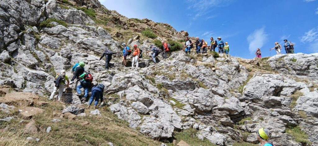 Después de un pequeño descanso seguimos subiendo por fajas herbosas  alternando con otras de lajas calizas hasta que alcancemos la cota de 2000m en la vertical derecha del Barranco del Aspe desde donde pudimos disfrutar de esplendidas vistas del espectacular barranco desde su inicio hasta la zona de Sansanet y Forges de Abel, picos como la Ruaba del Bozo y Labate entre otros.